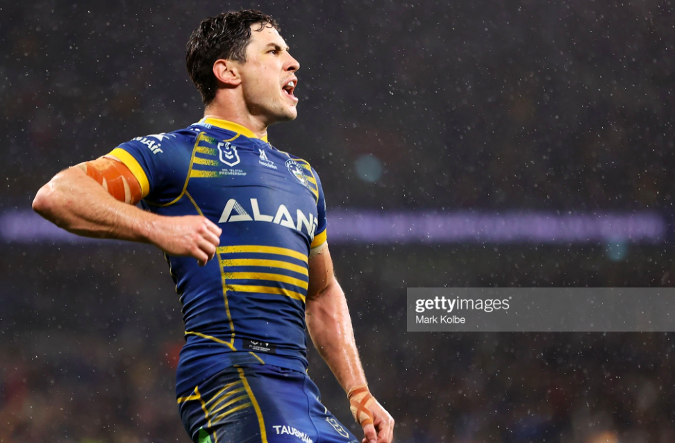 With a full set inside the ten, Parra now had the best field position of the game, and yet they hadn’t offered much creativity in the way of their charges, and on the verge of dissociating when Moses and Brown failed to link up fluidly on the right edge, only for Mahoney to step up in the spine and improvise a grubber that Tuipulotu had no choice but to clean up in the left corner. It was the first dropout of the game, but the Eels couldn’t do much more than charge straight at the line again, culminating with Matto driving it hard under the crossbar.
