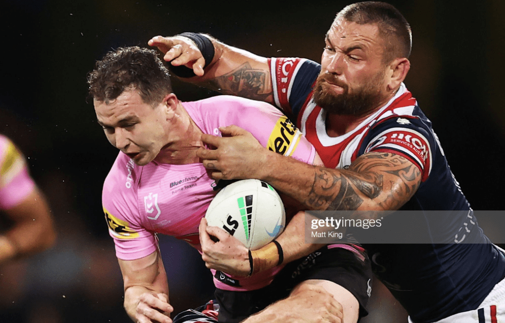 Saturday night was back-to-back blockbusters, but the Panthers’ win over Sydney couldn’t have been more different to North Queensland’s elastic victory over Melbourne. This was grind, pure and simple, closer to the spirit of a particularly grim semi-final, as the Roosters showed why they’re the best goal line defenders in the comp by keeping Penrith out for long stretches of the game, most notably the first thirty minutes, when it felt like they might just get their first win over the mountain men since Round 24, 2019.