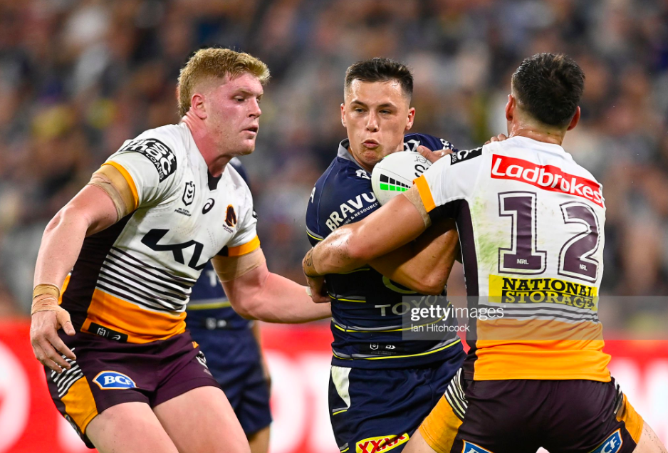 In contrast to this tightly fought 10-8 half of football, the second stanza was a tryfest, as the Broncos put down 18 more points, and the Cowboys notched up 30. The hosts got it rolling, as a tough run up the middle from Tom Gilbert put Nanai in place to break halfway on the third, Oates met massive contact from Nanai and Feldt on the return, Cobbo copped the same from Gilbert, and Brisbane only got a pair of charges from Haas and Flegler before Staggs laid fingertips on Reyno’s first boot back to grant North Queensland a seven tackle set.