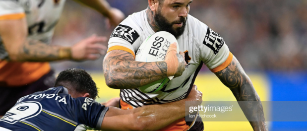 Of course, the big headline tonight was the return of Adam Reynolds from the rib injury in Brisbane’s courageous win over Canberra in Round 14. That the Broncos have exceeded even their most devoted fans’ wildest expectations, hit fifth on the ladder, and even become a genuine top four prospect, is largely a tribute to the vision and focus that Reyno has brought to Suncorp, but he wasn’t quite able to summon that leadership tonight, putting in some of his spottiest kicking of the season as Cowboy after Cowboy targeted his torso.