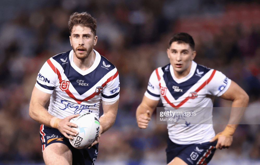 Both teams had now made errors just when they needed to be capitalising, so the game seemed to reset itself as Sydney packed the scrum, and news came down that Ponga wouldn’t be returning from the sheds. Accordingly, the Roosters finally found their flow, as Watson marked his early stint off the bench, and used the aggro from his former club, to make his team’s first linebreak and assist of the night. Dummying a couple of times in his own end, he busted through a last-ditch Clune tackle, swivelled around Gagai, and hit open space.