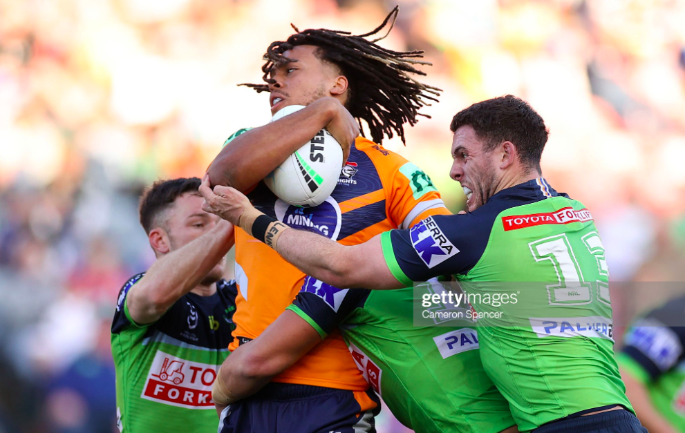Yet that opening made the second stanza even harder. They wouldn’t score another point beyond the break, when Jacob Saifiti’s absence with Covid and Tyson Frizell’s absence due to a rib injury sustained during warmup really made themselves felt. With Jack Wighton’s visionary playmaking at the helm, the Raiders responded to that deficit amongst the Newcastle big men with a sublime combo from Josh Papalii and Joe Tapine at the death to put their five-eighth over the line, and so end a 22-22 deadlock in the most rousing way.