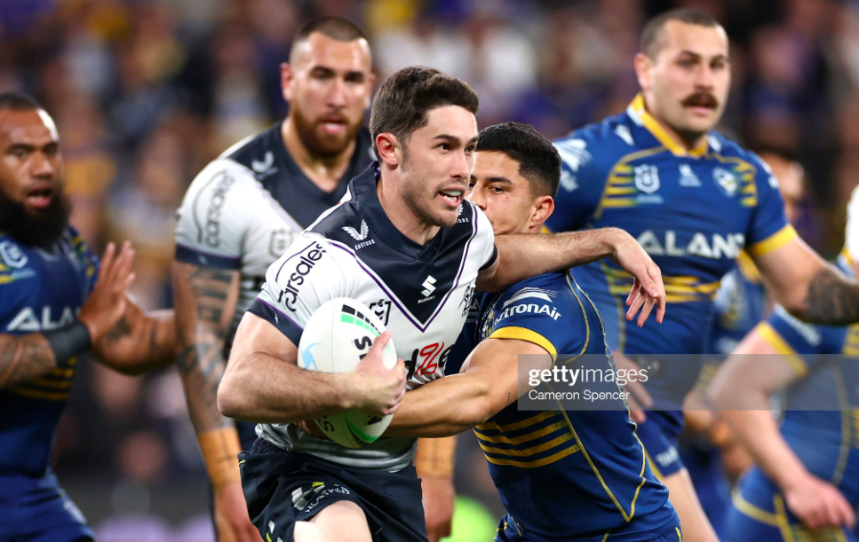 The first game of the last round of the regular season was already finals footy in spirit – Melbourne at fourth, Parra at fifth. The winner was guaranteed a spot in the top four, the loser could be out in the first week of finals. Parra had to be the team that had beaten Penrith twice in 2022, and downed Melbourne in golden point, while the Storm hadn’t finished outside the top four since 2015, and were without Jahrome Hughes on the park, bringing Cooper Johns into the halfback jersey for the biggest game of his burgeoning career to date.