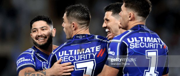 Roaring in triumph, the young hooker flicked the footy backwards over his head, in a vision of pure belief, rugby league ecstasy, that made it feel like the Bulldogs just might win this, especially since Burton booted through another two to narrow the deficit to four, and news came down from the sheds that JMK had been cleared to return after the break. With 37-25 tackles in the opposition end, they’d done well to narrow the game, even if they didn’t capitalise on a dangerous shot from Croker, the last event before they headed to the sheds.