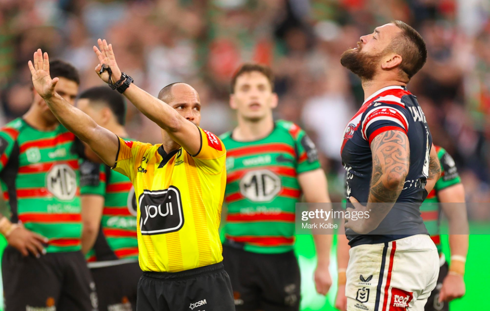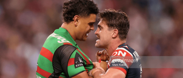This was also one of the greatest of the many storied contests between the Chooks and the Bunnies, a game that cemented their rivalry in the realm of football mythology, distilled it to a primal agon as a record seven players were sent to the bin, and the Roosters, who had already lost Joey Manu, saw James Tedesco, Angus Crichton, Daniel Tupou and Sio Siua Taukeiaho all leave the park, in a reprisal of their injury issues of the last two years in miniature. Only Taukeiaho would return, in a game that gave sudden death a new meaning.