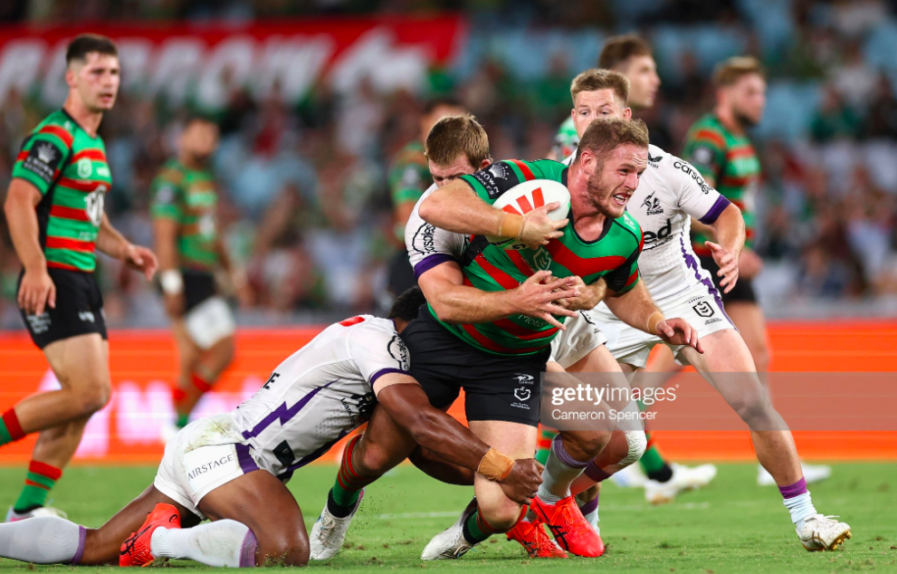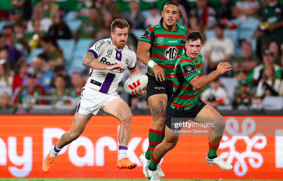 Both the Bunnies and the Storm were coming off two wins and two losses when they met on Friday night at Accor. South Sydney had enjoyed an emotional win over the Sea Eagles in golden point, thanks to the first field goal of Lachlan Ilias’ career, while the Storm hadn’t put their choice halves together since Round 1, and needed a big one from Cameron Munster to start propelling them back towards the first four. The surface was choppy at Accor too, meaning both teams had only warmed up in situ for ten minutes when they left the sheds.