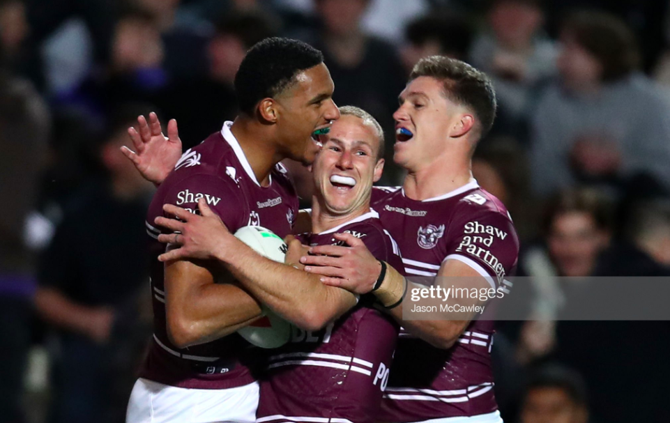 That newfound vision all condensed on a beautiful curving ball from Hammer that found Niu on the chest, and would have been the most precise assist of the game if Tesi hadn’t made his second choke on the wing. This time he reined it in with both hands, but hadn’t counted on the strength of Garrick’s defence, which propelled the footy from his grasp as he hung in the air above the try line. Manly hit back fast, hard and precise, as Turbo sent a short one out to put Olakau’atu through the line late in the following set, with Garrick ready for the assist.