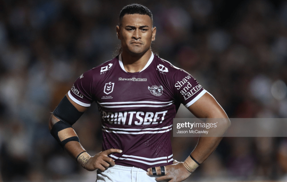 They got a much-needed bump up the field with a Sipley ruck error early in the next set, and yet no sooner had they glimpsed this position than the Sea Eagles struck back with a two-shot defensive punch – first a hit from Tolu Koula on the Hammer, who lost the ball backwards, and then a follow-up effort from Tuipulotu, who channeled the spirit of Jorge Taufua to get in Valynce Te Whare’s face and force the knock-on. Two tackles later, this duo suffered an even more egregious dip in form, as Turbo stepped into the spotlight with pure footy magic.