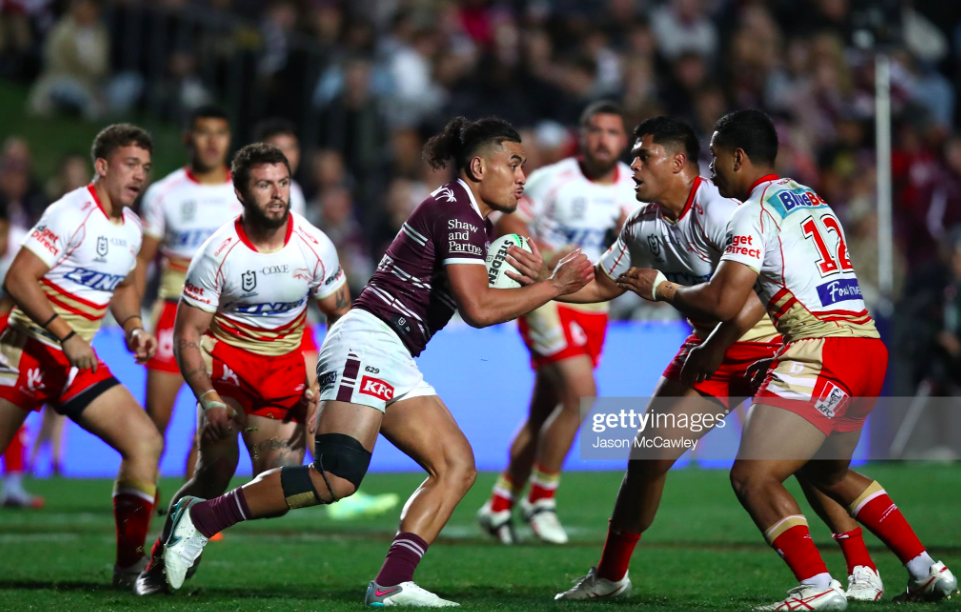 The Dolphins managed to make it five metres inside Manly’s half by the time Katoa took his first bomb back, while DCE couldn’t break his forty for the next kick. Driving runs from Te Whare and Stone only compounded this positional advantage, putting Donoghoe inside the twenty by the penultimate play of the next set. Yet when the left sweep failed to congeal, Nikorima was forced to pivot back infield, and then resort to an unconvincing dribble kick that the Sea Eagles cleaned up clinically, bringing this glimpse of Dolphins resurgence to an end.