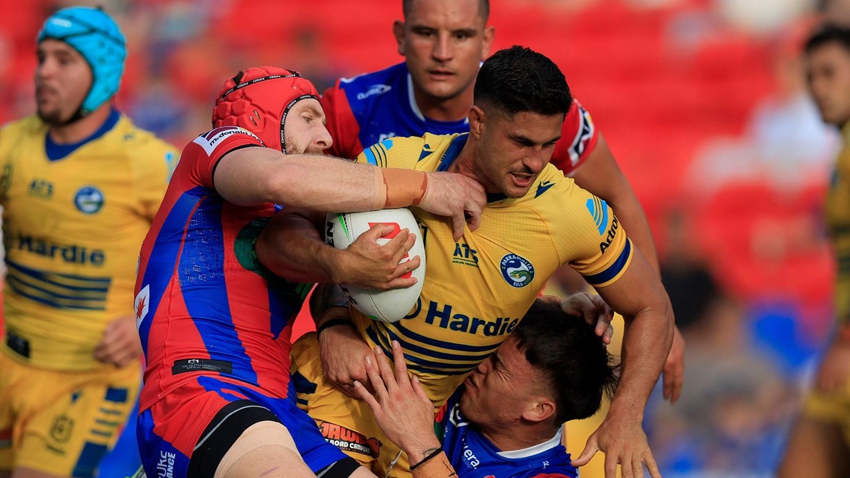 That laid a platform for one more Parramatta try before the break – a try that had shades of both Volkman’s sweeping and ball-playing and Brown and Tuilagi’s big charges into the defence. Two minutes out, the Eels headed left, compressing their passes until Joash Papalii had enough room to dance around Riley Jones. Volkman added his third and last conversion – Joshua Lynn would take over after the break – and the Eels headed to the sheds 22-4, a pretty sobering score even without some of Newcastle’s biggest guns on the Hunter turf.